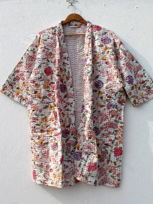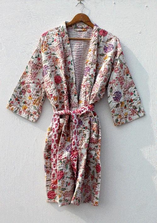 Tissu:Robe imprimée en bloc Kimono en coton