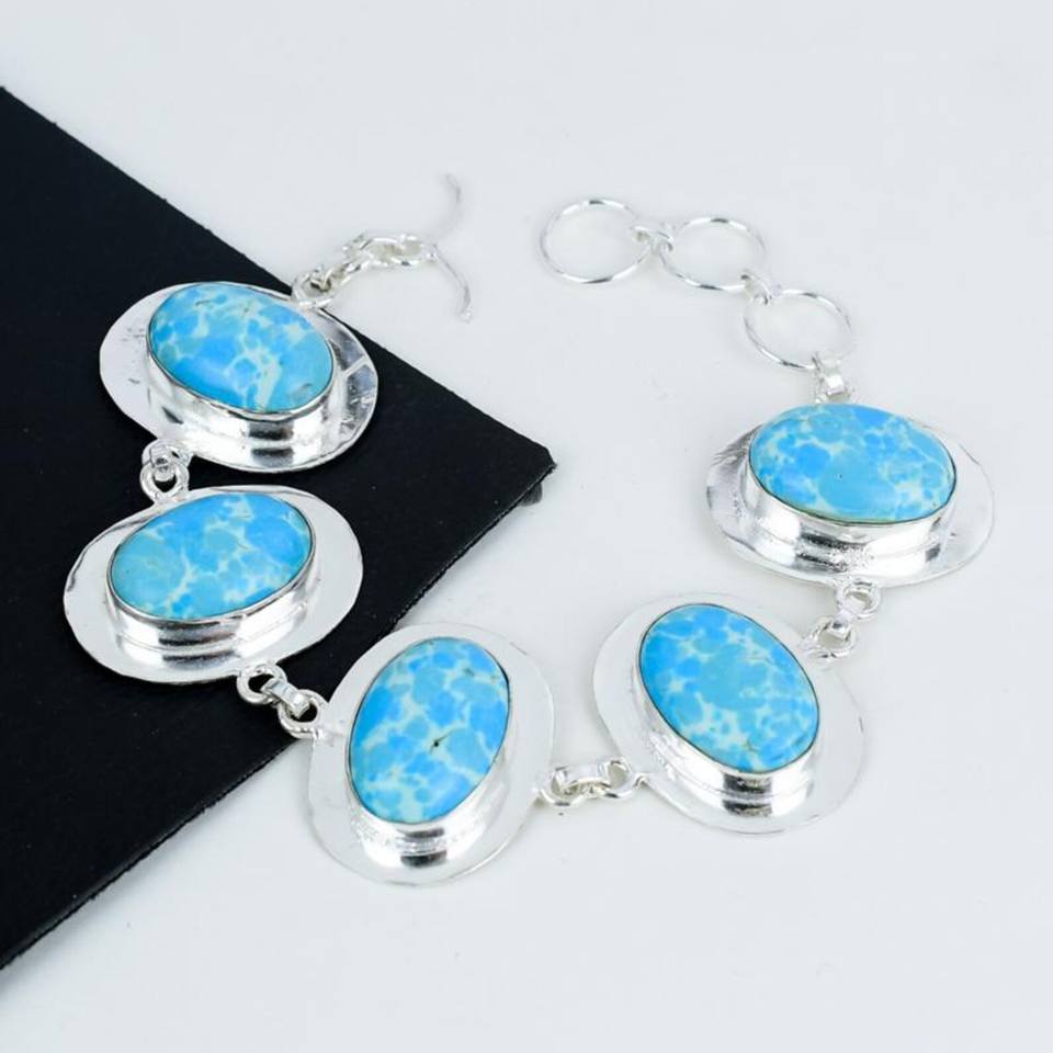 Bracelets en argent sterling 925 Larimar naturel indien fait à la main Bracelets naturels 925 estampillés pour Thanksgiving, cadeaux pour elle