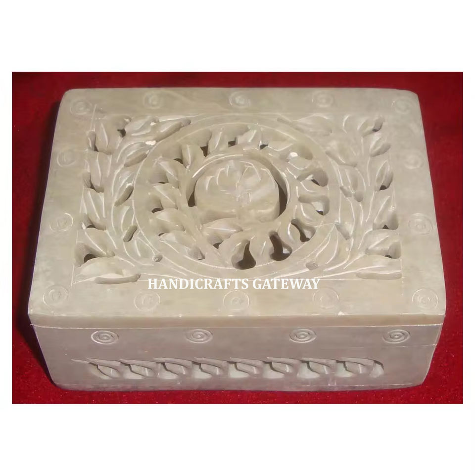 Stéatite naturelle indienne faite à la main sculptant des boîtes de rangement de bijoux uniques de forme rectangulaire pour les entreprises et les cadeaux