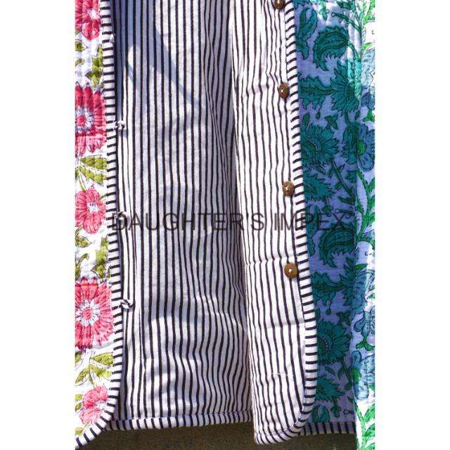 Veste matelassée vintage patchwork faite à la main indienne Nouveau style Veste en coton Boho Manteau à passepoil à rayures noires Veste imprimée florale