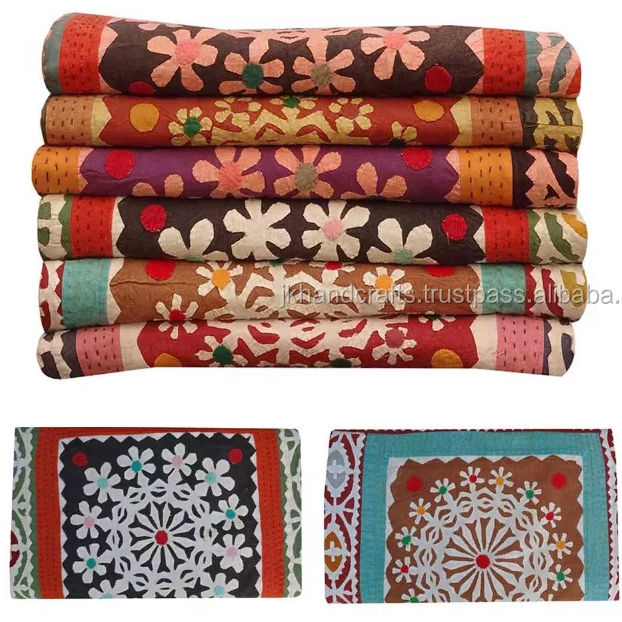 Couette de travail indienne faite à la main Queen Size Floral Cut