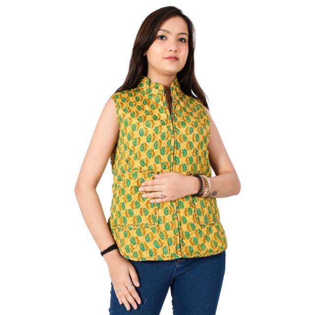 Veste en soie matelassée indienne faite à la main sans manches manteau à fermeture éclair vêtements ethniques élégants pour les femmes