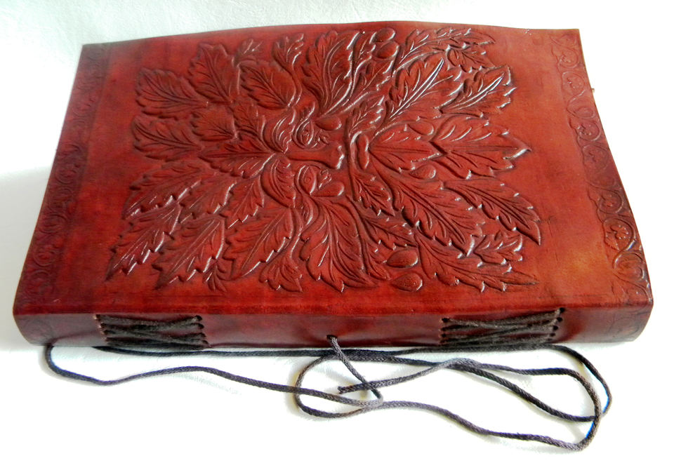 Carnet de notes A5 en cuir véritable fait main en Inde, couverture souple, design feuille, journal personnalisé avec fermeture à sangle