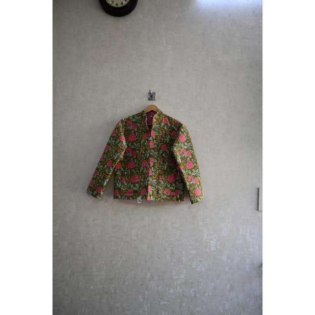 Indian Handmade Reversible Eco-Friendly Winter Jacket 100% Cotton Block Print Quilted Floral Pattern Long Sleeve Woven Button