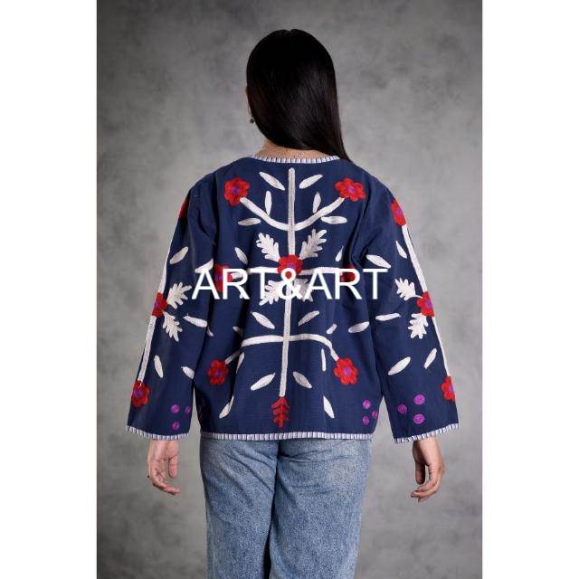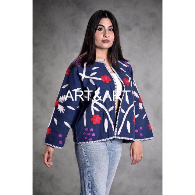 Veste Bohème Fait Main Coton Suzani Veste Avant Ouverte Veste Courte Femmes Porter Indien Suzani Travail Manuel Brodé Court