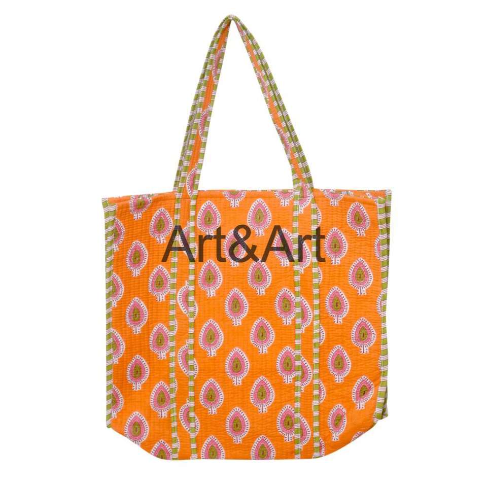 Indian Handmade Vintage Bohemian Block Printed Cotton Tote Bag Two Handles Open Closure Women Shoulder Shopping Gift Birthday
