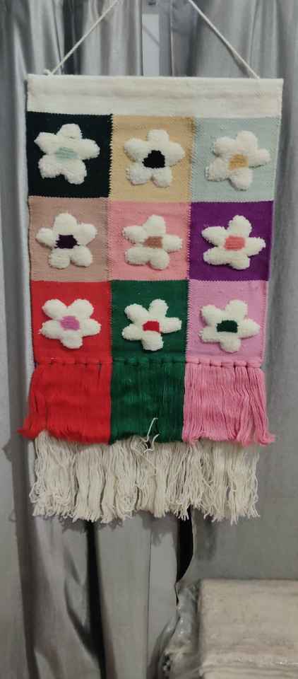 Tapis mural abstrait noué à la main en laine indienne | Tapisserie en macramé tissée à la main, décoration bohème moderne, décoration murale -41