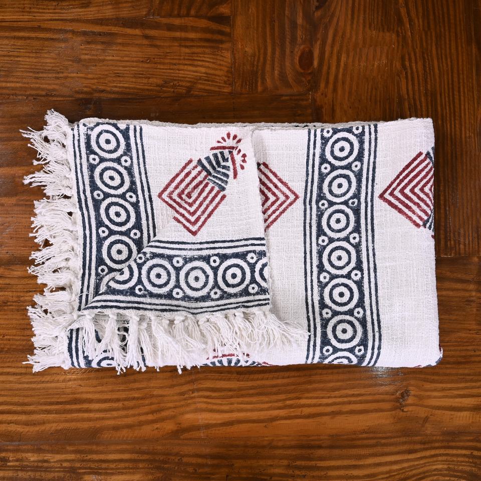 Couvertures de pique-nique en coton blanc imprimé rouge et noir de bloc traditionnel décoratif pour la maison indienne de haute qualité aux prix de gros