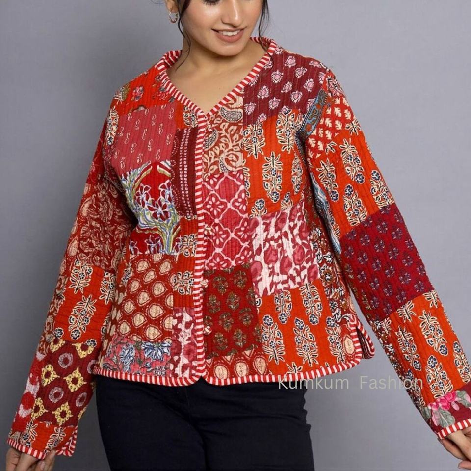 Nom du produit:Veste Kantha matelassée en coton réversible