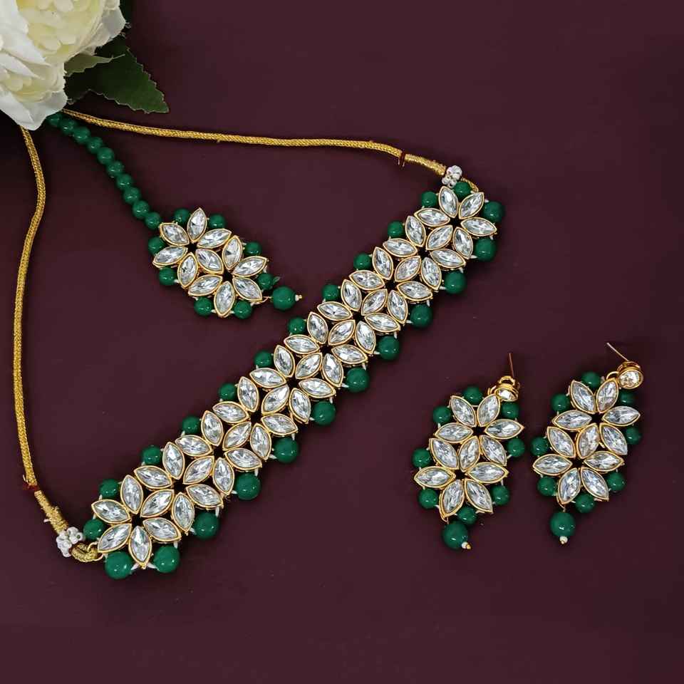 Indian Jewelry Crystal Faux Pearl Bridal Choker Necklace Jewellery Set For Women Indian Jewellery Wholesale, Green