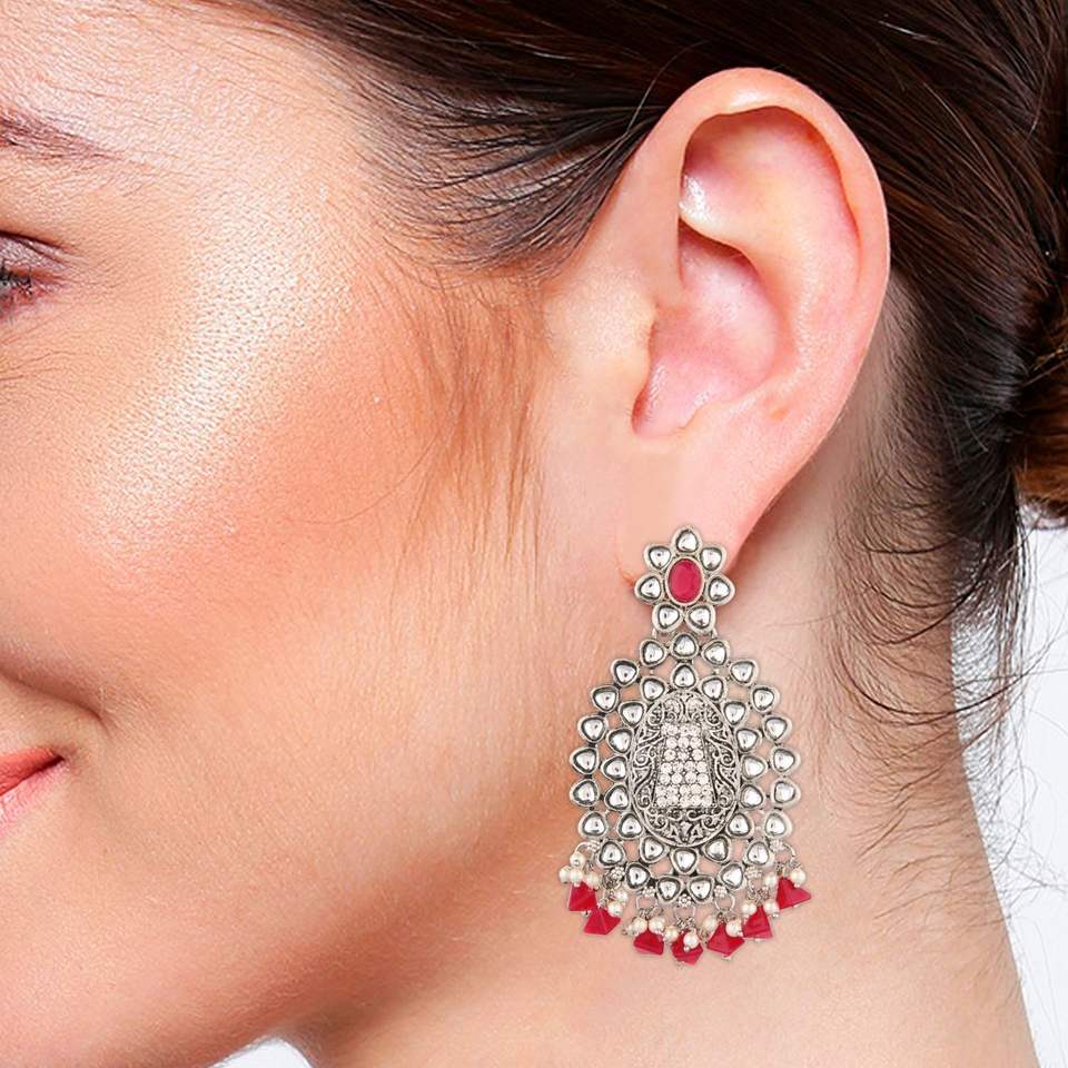 Design:Antique handmade boho vintage oxidized silver earrings set