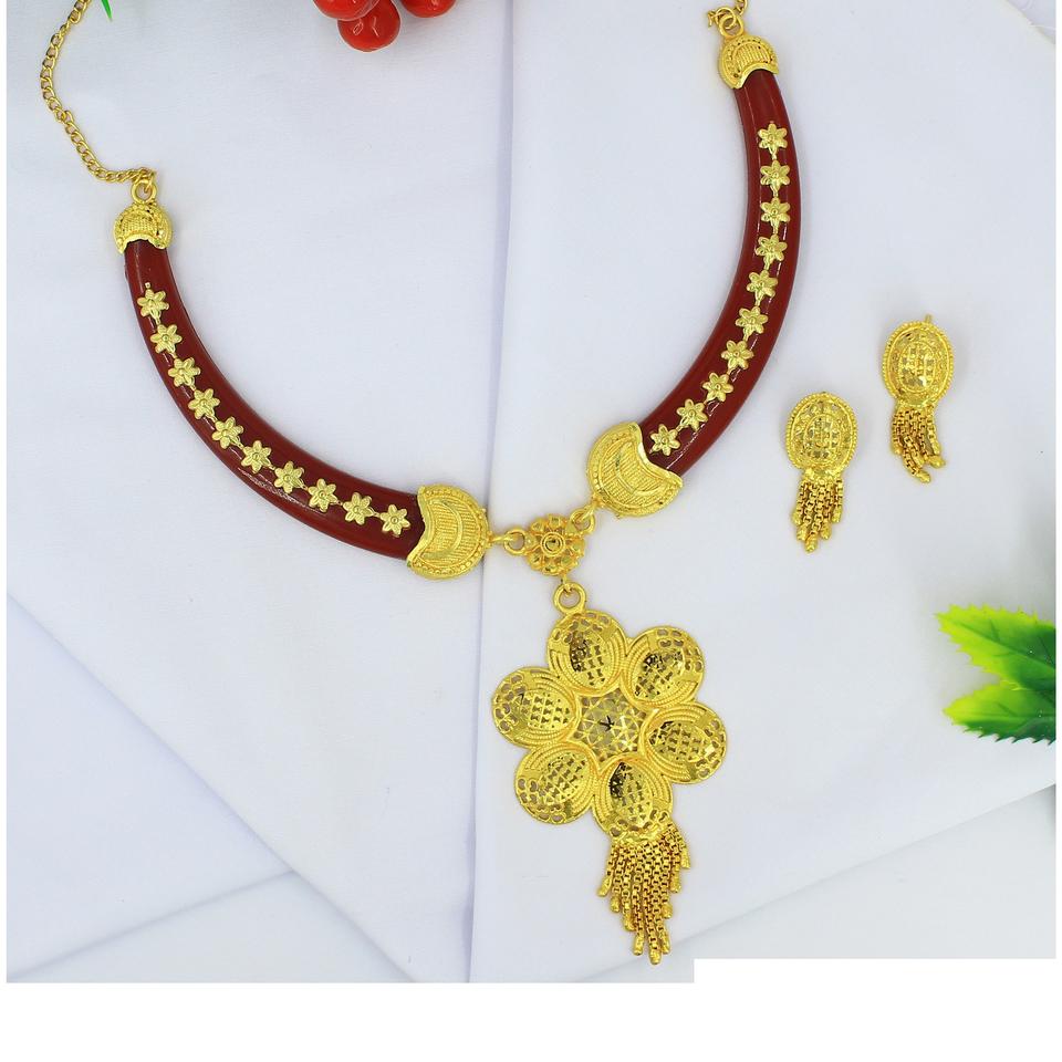 Ensemble de bijoux indiens en laiton pur plaqué or de haute qualité uae dubai collier design collier sankha pola bengali collier