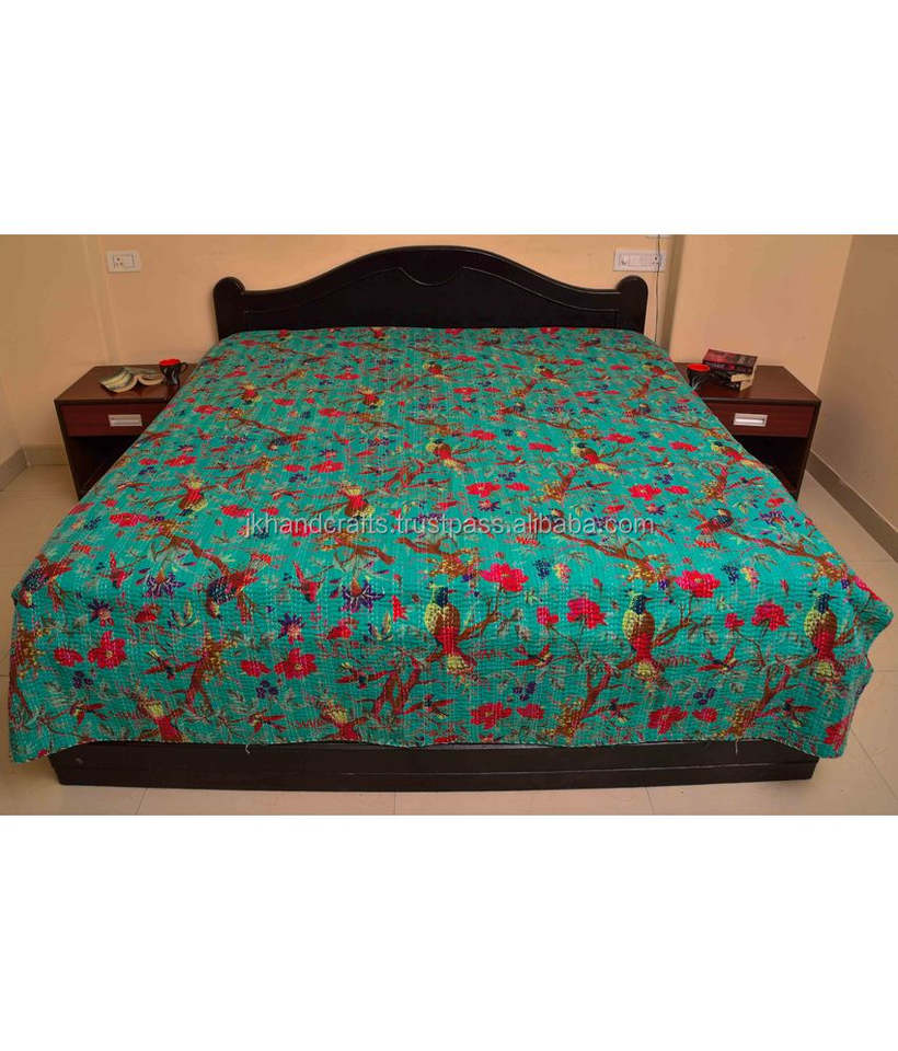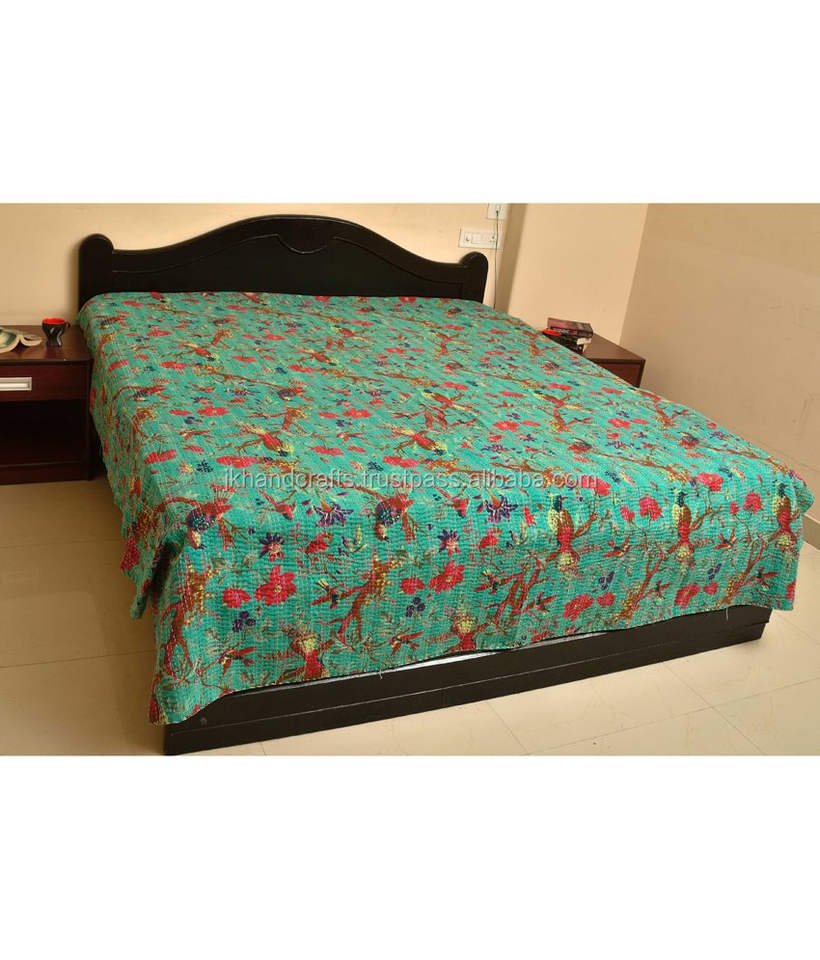 Couette Kantha indienne New Bird Print Kantha Bed Cover
