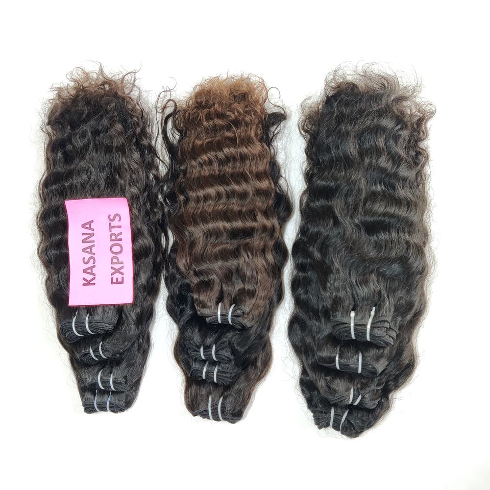 Machine indienne Double trame vague profonde paquet cuticule brute alignée couleur naturelle noir Extensions pour femmes boucles vietnamiennes en gros