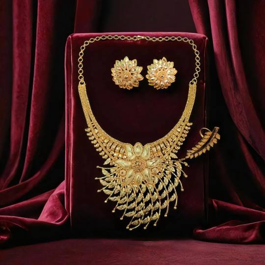 Bague de collier boucles d'oreilles en plaqué or 22 carats de fabrication indienne sertie de bijoux de mariée de conception traditionnelle à vendre par les exportateurs