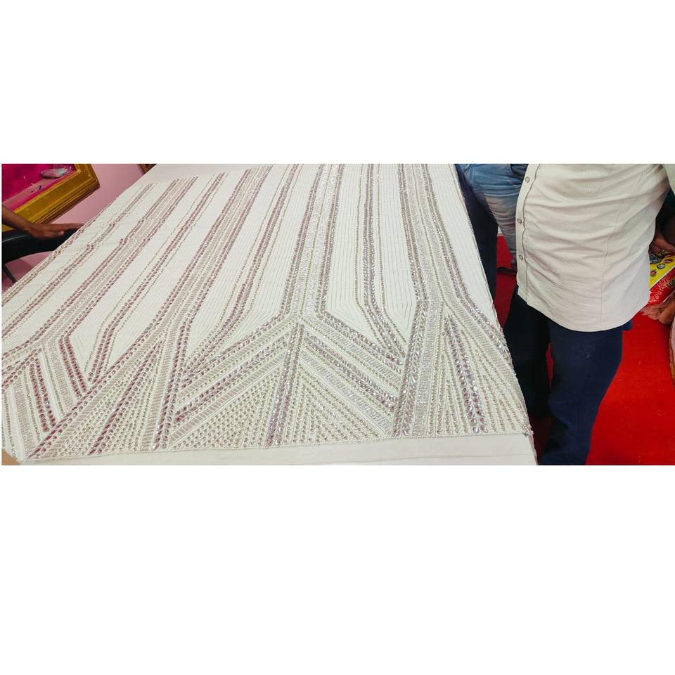 Indian Manufacture Luxury Beaded Cotton Lace Fabric with Heavy Embellishments for Custom Bridal Available for bulk Quantity