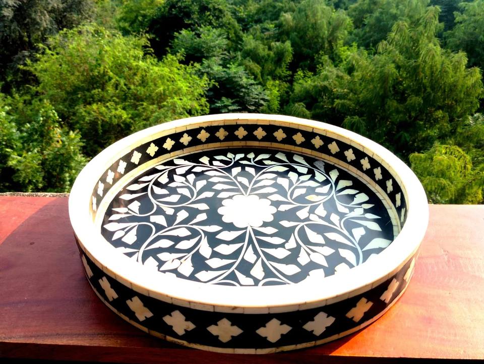 Plateau de service en os incrusté, fabriqué en Inde, pour thé, café, collations, plateau décoratif en bois fait main, disponible à la vente