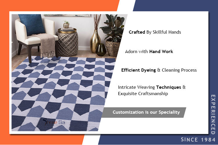 Tapis brodés modernes en laine et coton 100 %, style Kilim, du fabricant indien, lavables pour bureau et cuisine – Offre Spéciale