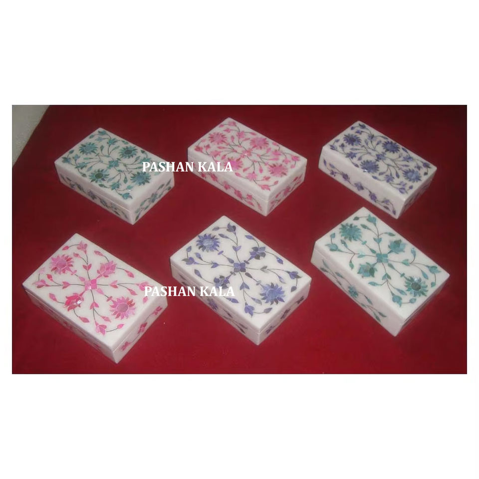 Fabricant indien de boîtes à bijoux en marbre rectangulaires faites à la main avec incrustations de nacre et de fleurs, pour le festival du Ramadan