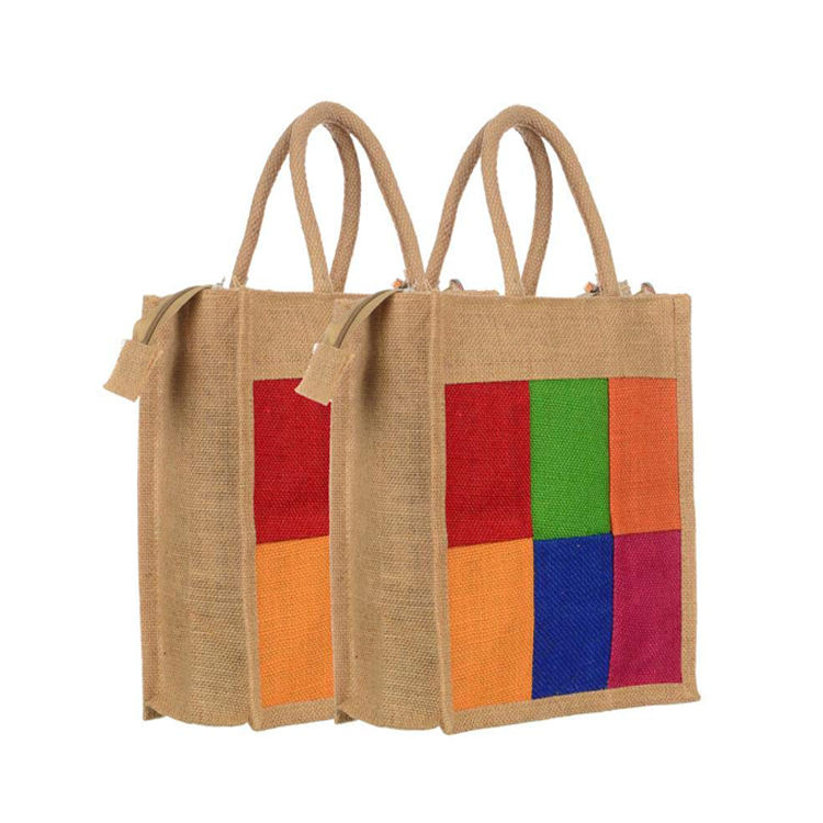 Grands sacs en Jute imprimés de fabrication indienne, sac de transport polyvalent décoratif et réutilisable avec fermeture éclair et poignée, tendance 2020