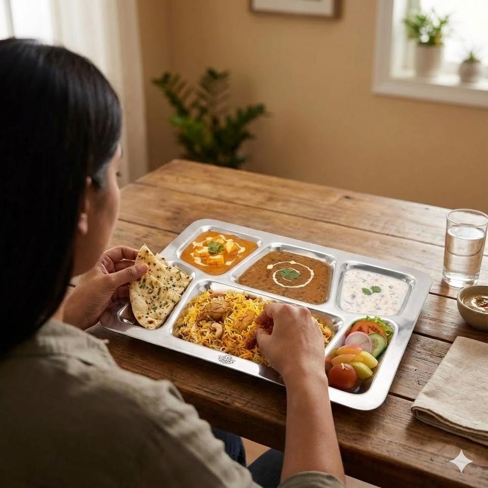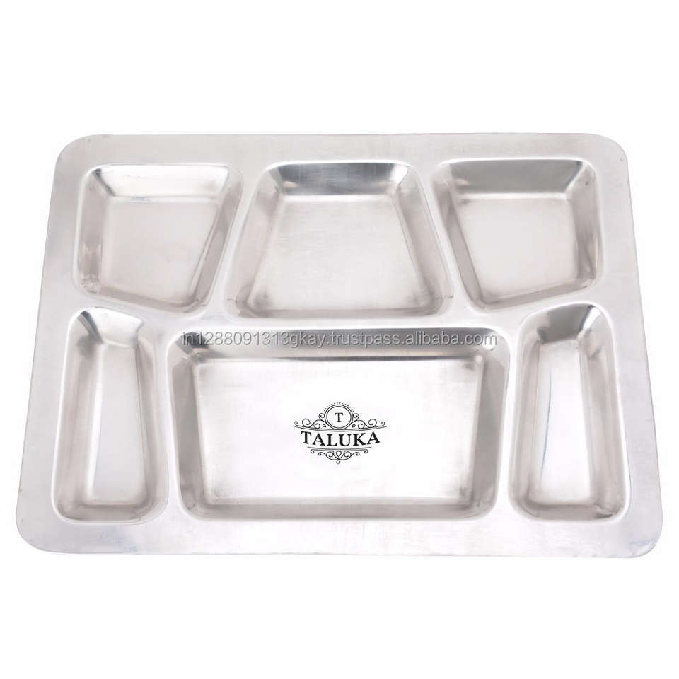 Assiettes en acier inoxydable pour repas, restaurant, hôtel, fabrication indienne, 6 en 1, assiettes compartimentées
