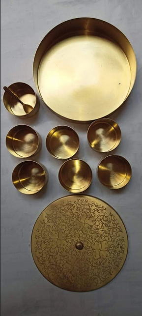 Boîte indienne Masala-Vaisselle en laiton Boîte de rangement d'épices de cuisine Masala Dabba Boîte à épices indienne en laiton avec une cuillère