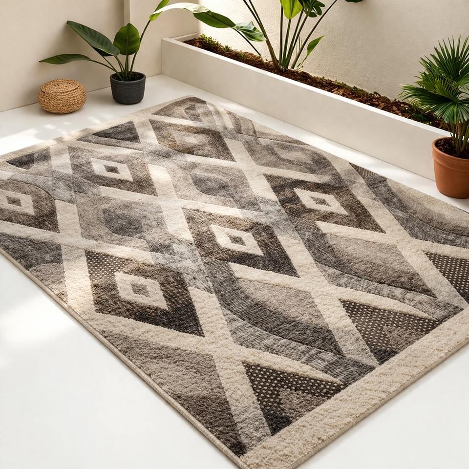 Nom du produit:Tapis géométrique moderne gris, moquette neutre, doux et moelleux