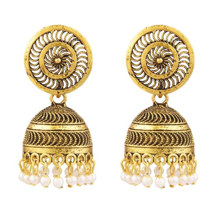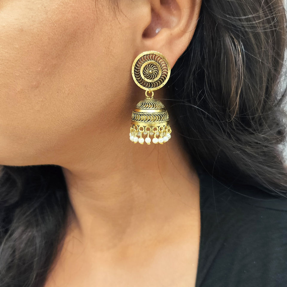 Indien oxydé Antique rond goujon traditionnel Jhumka Jhumki fausse perle balancent boucles d'oreilles de mariée bijoux de mode indiens pour les femmes