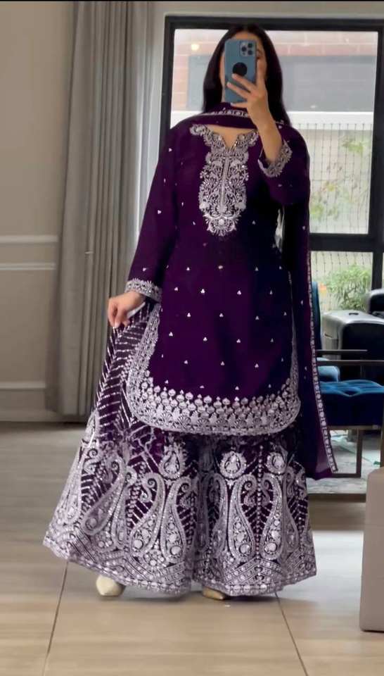 SHARARA WORK:Heavy Embroidery Work With Fancy Borders Less Work Fully Flair.