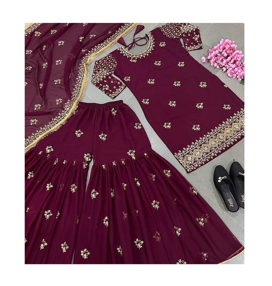 Product Name:Party Wear Look Top , Sharara Palazzo And Dupatta