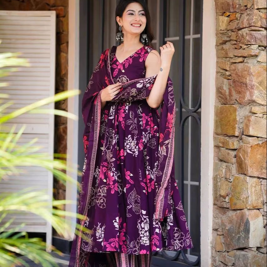 Magnifique robe Anarkali indienne pakistanaise en tissu de soie Maslin, avec des motifs imprimés numériquement, pour mariage, occasions décontractées, vêtements traditionnels pour femmes