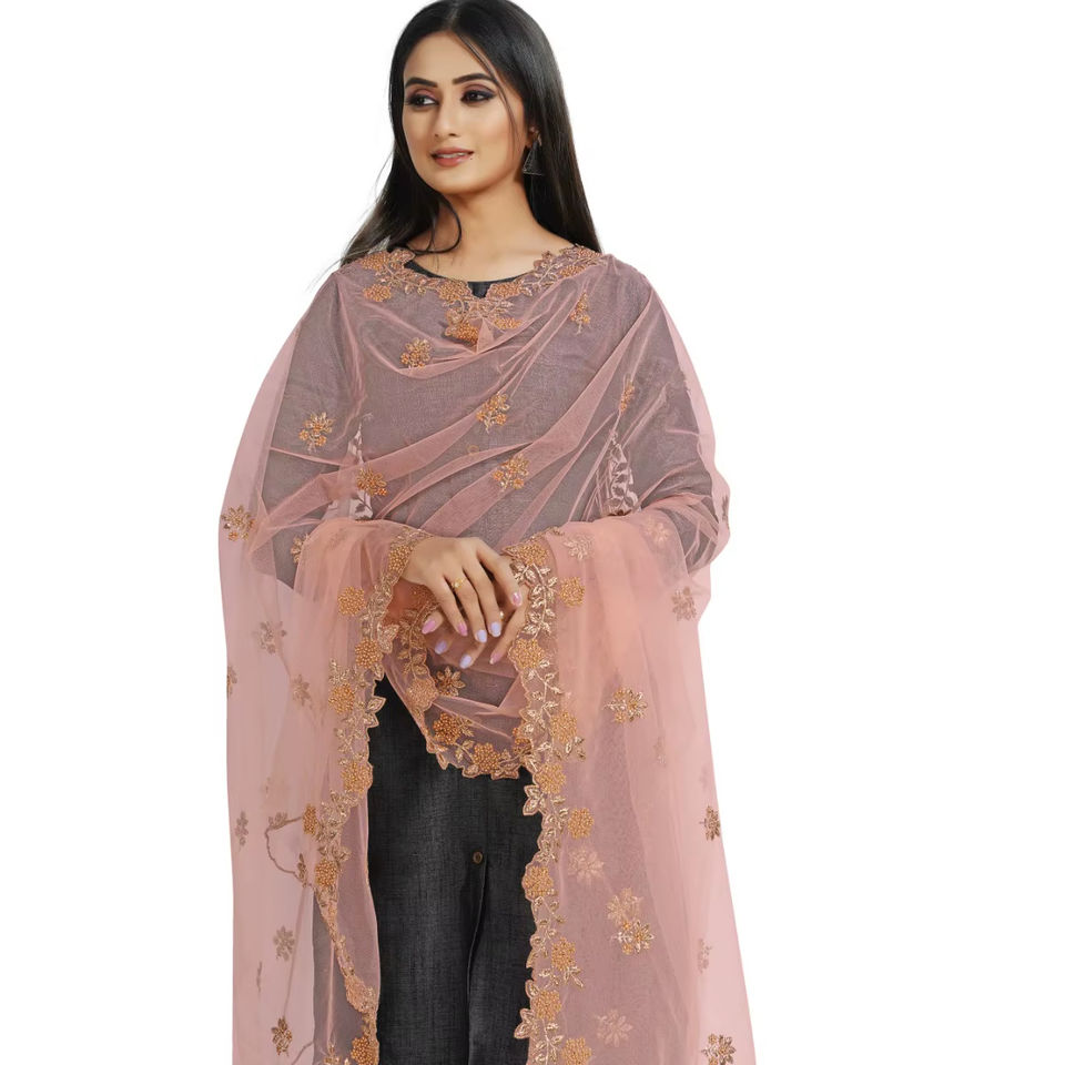 Magnifique dupatta en tissu filet indien pakistanais, broderie fantaisie, pour mariage, décontracté, traditionnel, pour femmes et filles.