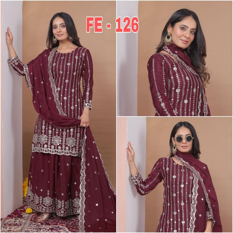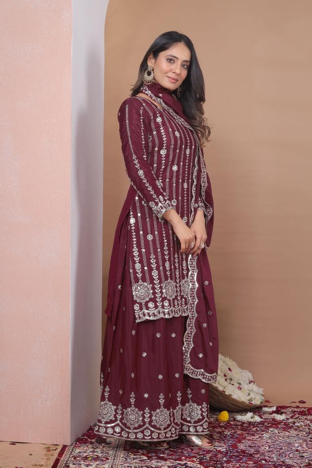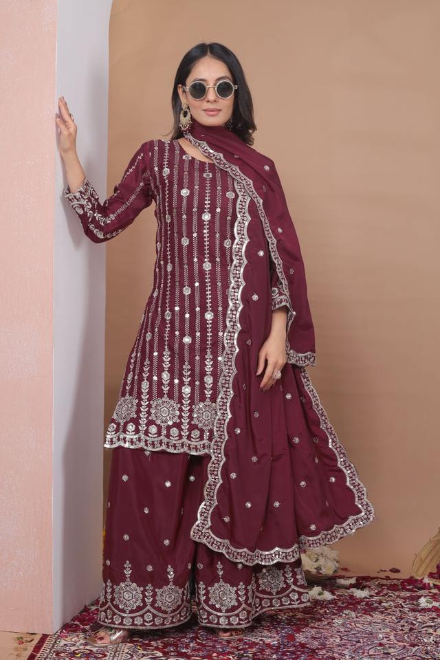 Ensemble Sharara indien pakistanais magnifique et élégant en tissu crépon pour fêtes, mariages, occasions traditionnelles et tenues décontractées.