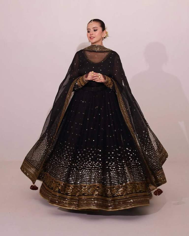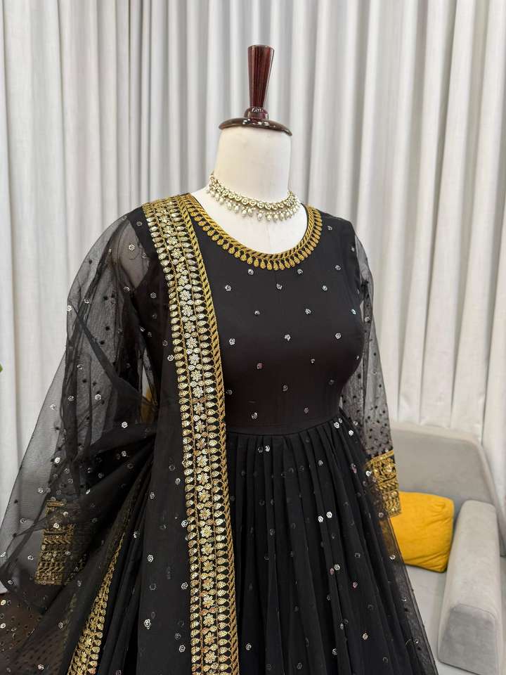 Magnifique robe Anarkali indienne et pakistanaise en tissu filet souple, avec broderie fantaisie, élégante, pour fêtes, mariages et occasions décontractées.