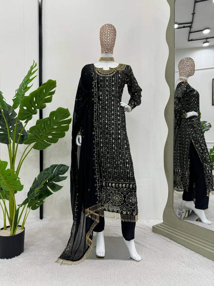 Ensemble de salwar kameez en georgette lourde, magnifique et élégant, de style indien et pakistanais, pour fêtes ethniques, mariages, tenues traditionnelles et décontractées, ou comme tenue de boutique.