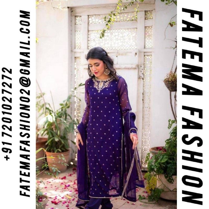 Indien pakistanais dames tenue fantaisie Georgette broderie séquence haut bas Dupatta violet velours soie cousu pour adultes