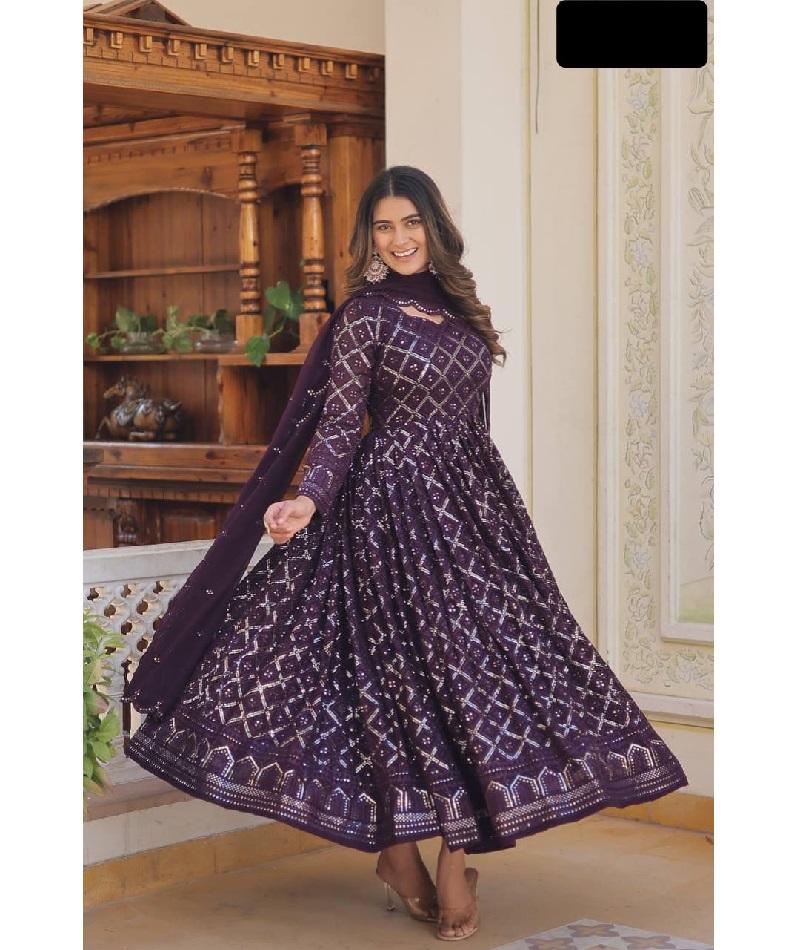 Salwar Kameez de style indien et pakistanais, richement brodé de sequins, avec un design ethnique moderne et des motifs floraux, idéal pour les mariages indiens.