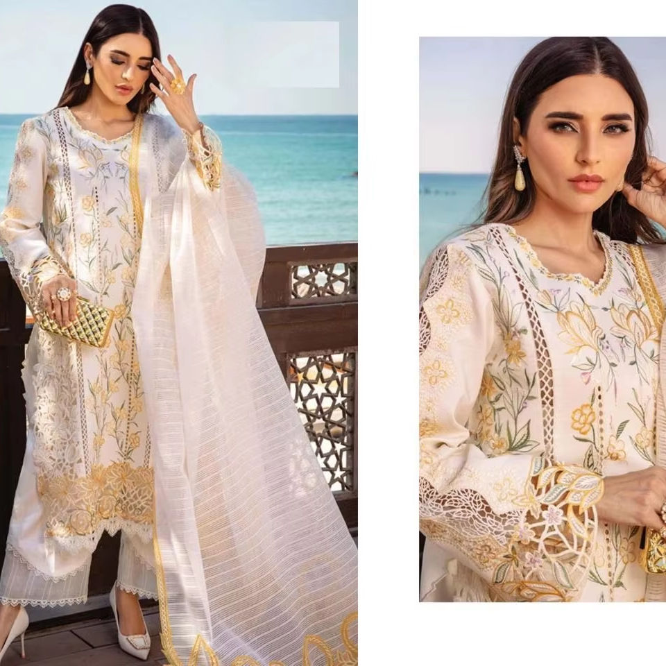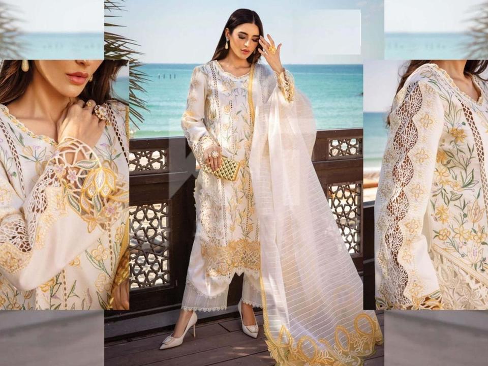 Costume de pantalon de coton de pelouse de broderie lourde traditionnelle pakistanaise indienne pour des femmes robe à la mode de festival de fantaisie pour l'usage de partie