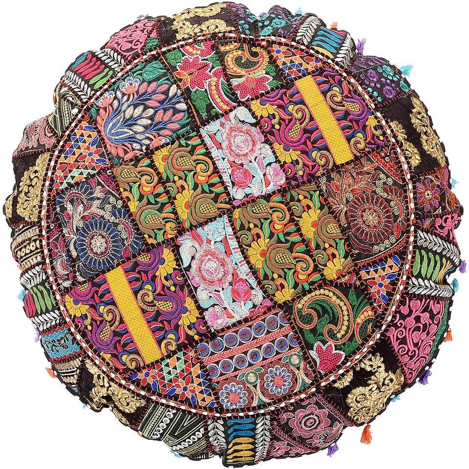 Patchwork indien fait à la main rond housse de coussin sol décoratif taies d'oreiller bohème coton naturel canapé canapé décor oreillers