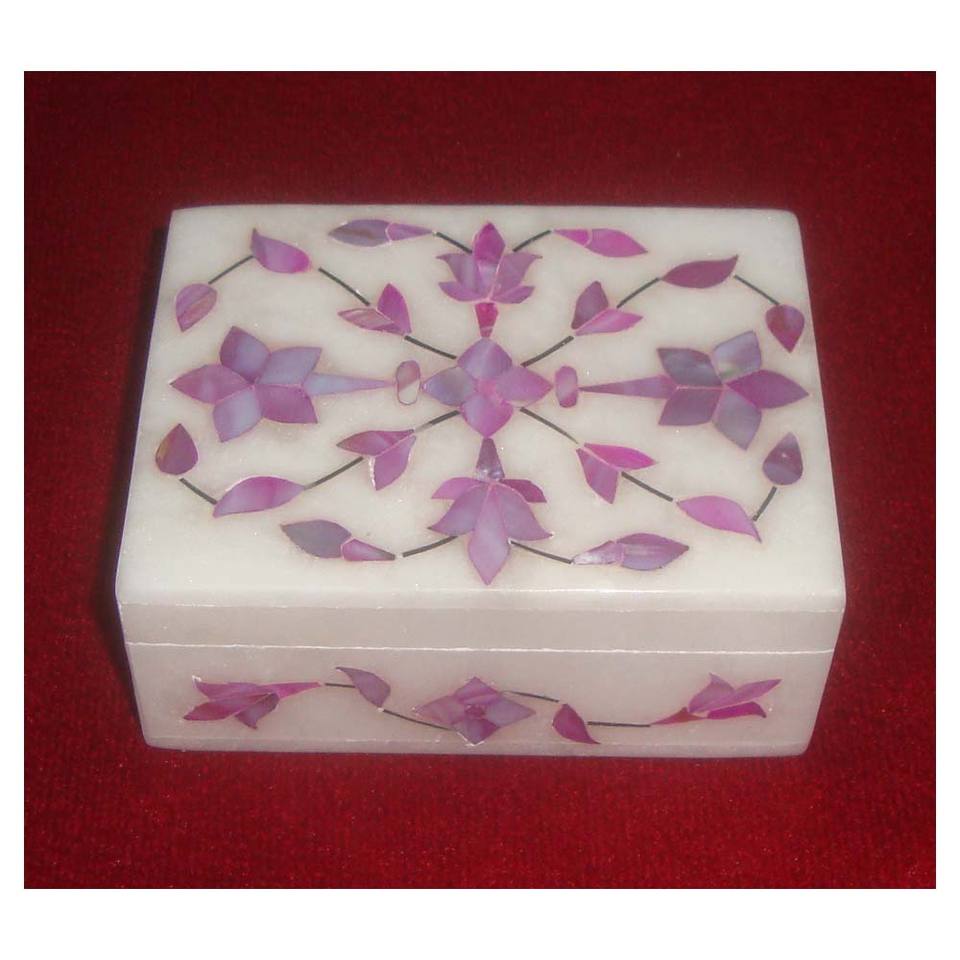 Boîte à bijoux rectangulaire en marbre poli, entièrement faite à la main, de conception indienne populaire, durable, pour la décoration de la maison et les affaires