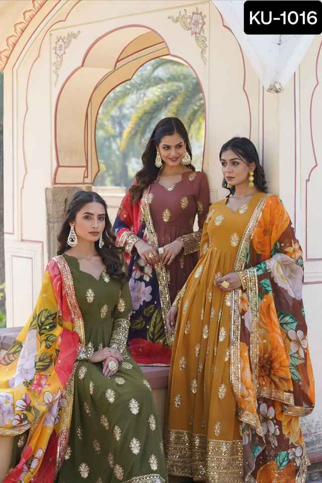 Robe en fausse Georgette de Style Anarkali de créateur indien Premium Collections Readymade Tabby Soie Brodée Cutwork Dupatta