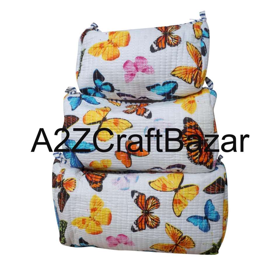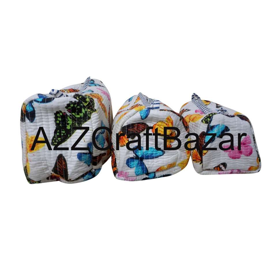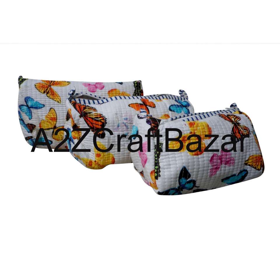 Pochette à maquillage pour femme, grande capacité, en coton vintage, légère, douce, avec fermeture éclair, écologique, réutilisable, style indien matelassé