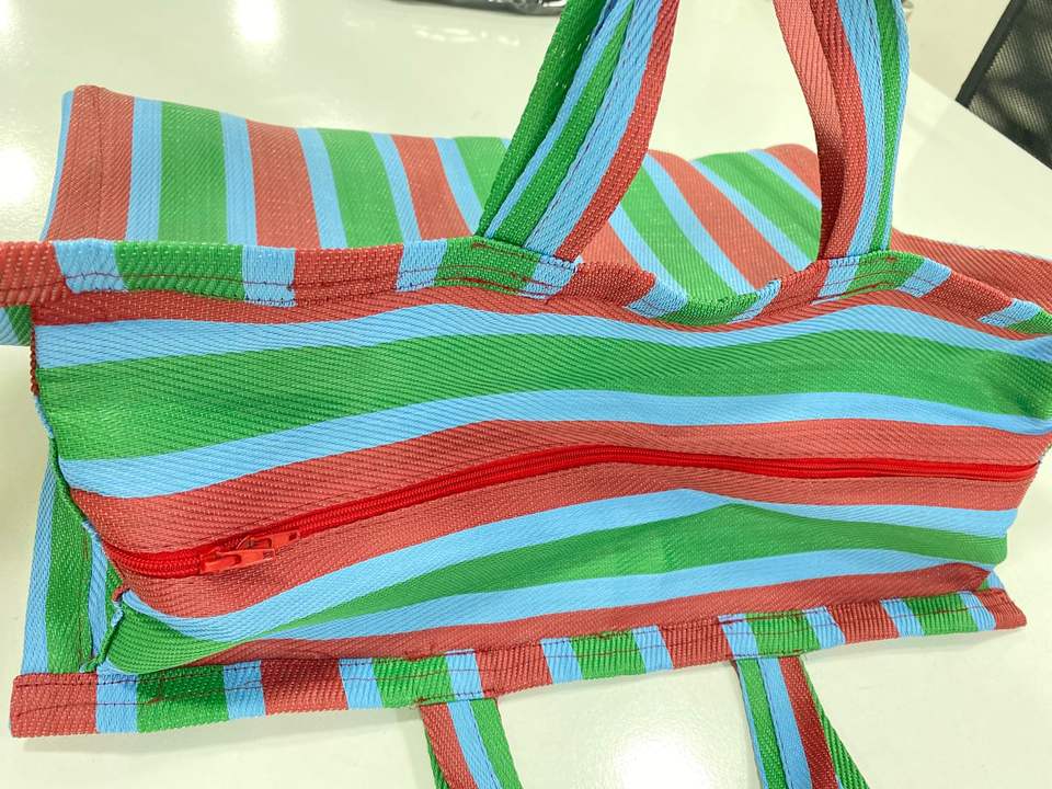Indian Recycled Nylon Striped Woven Bags Manufactured in India Eco-friendly Multicolor Market Bags and Pouches Made in India.
