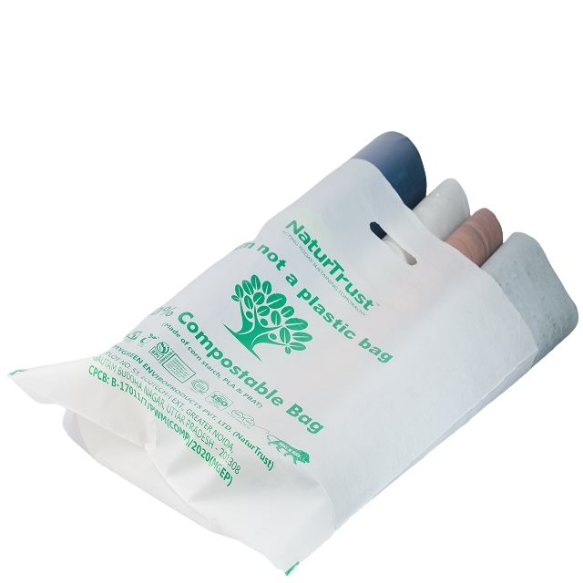 Sacs à provisions recyclés indiens en plastique d'amidon de maïs à deux poignées avec sac du marché d'approvisionnement en vrac EN13432 fabriqué en Inde