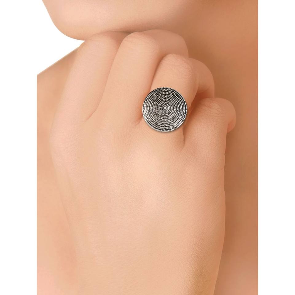 Conception:Antique boho vintage oxydé ton argent grande bague pour les femmes