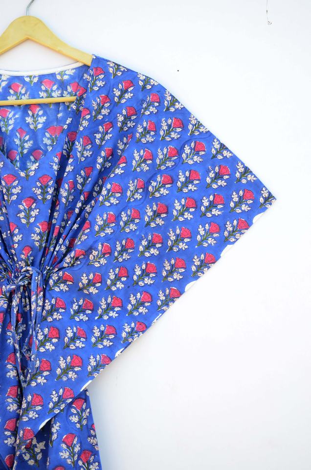 Sérigraphie indienne Écologique Dames Robe D'été Ethnique Voile Doux Soirée Plage Fête Porter Coton Designer Caftan Naturel