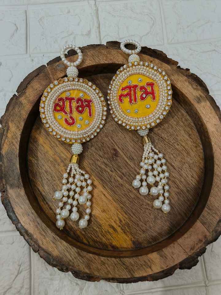 Décoration murale indienne Shubh Labh | Perle Kundan Gota faite à la main | Décoration de la maison Diwali Navratri | Puja et cadeau de mariage