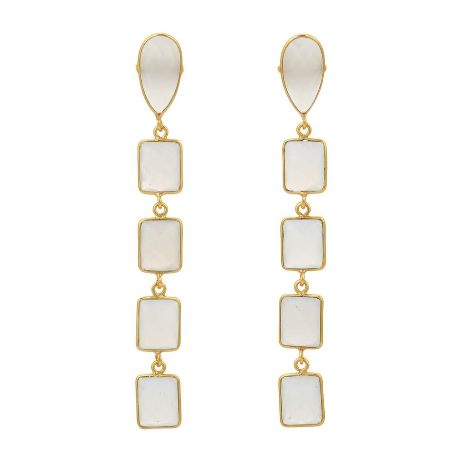Style indien nouveauté fantaisie calcédoine blanche naturelle 925 boucles d'oreilles en argent Sterling pour femmes et filles