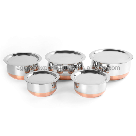 Ensemble de cuisson indien en acier inoxydable avec fond en cuivre et couvercle – Ustensiles de cuisine finition miroir