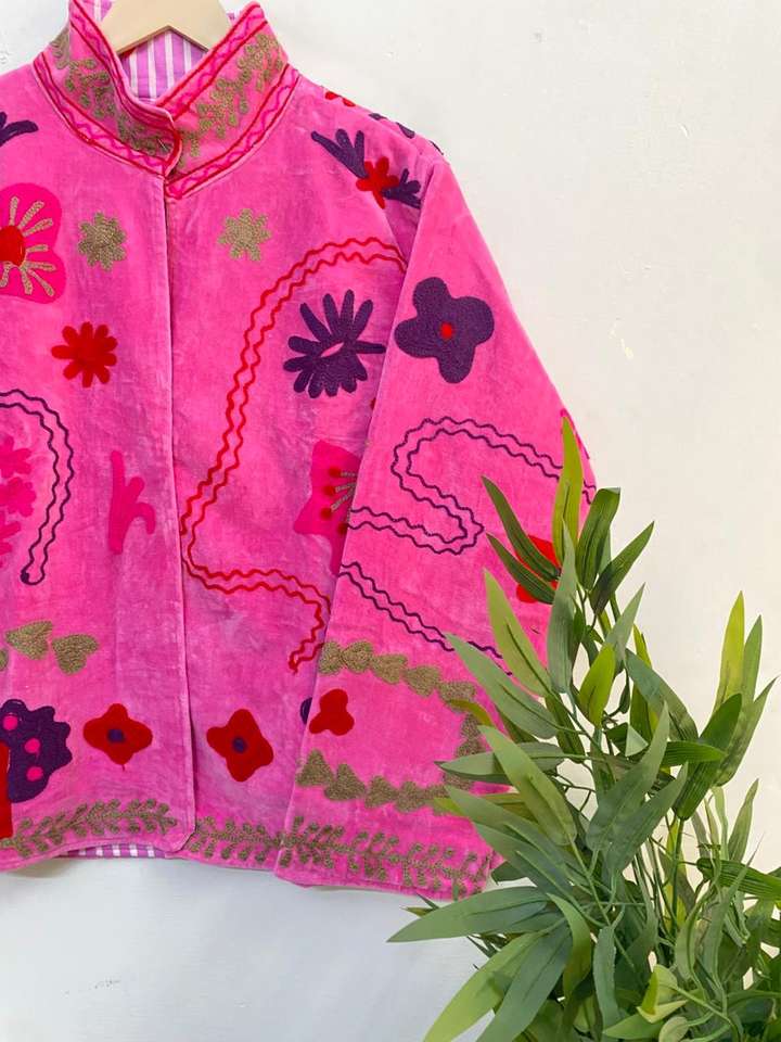 Veste en velours brodée de style indien Suzani | Vêtements d'hiver matelassés pour mariage, festival, fête, vacances.